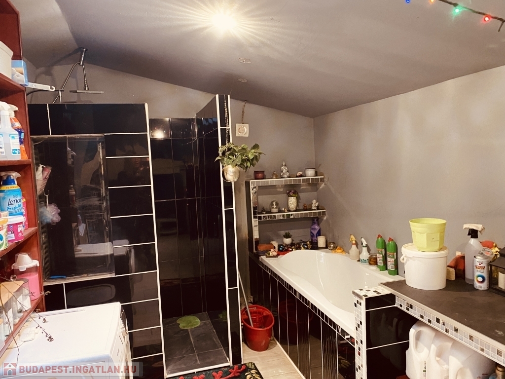 Különlegesen nagy fürdőszoba, ahol a kényelemről egy kád és egy épített zuhanykabin is gondoskodik.