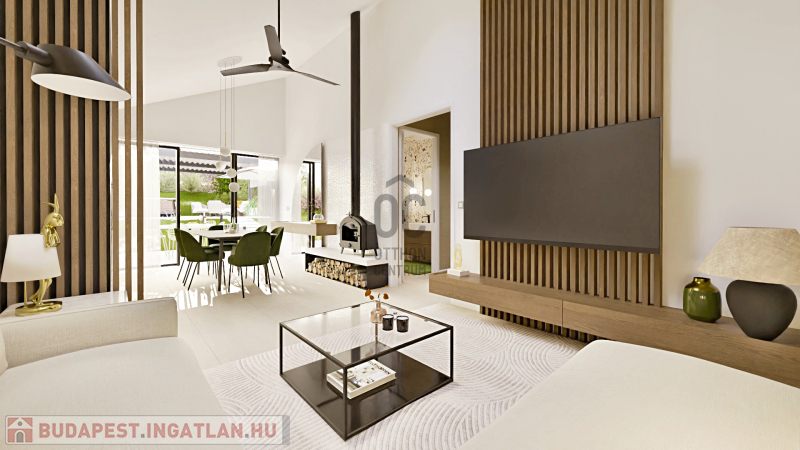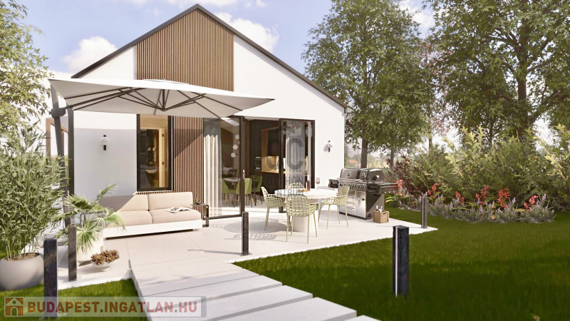 Nappali+2 hálószobás új építésű könnyűszerkezetes családi házat kínálok megvételre a hegyoldalon.
