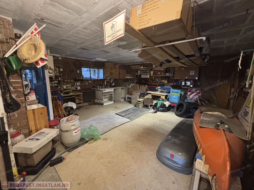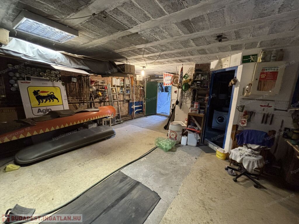 A legalsó szinten egy 35 m2 alapterületű szerelőaknával rendelkező garázs és tároló kapott helyet.