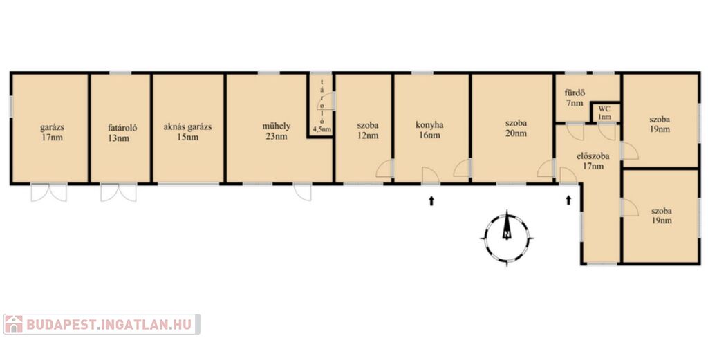 különálló, ~90 m²-es épület (műhely + 2 garázs)