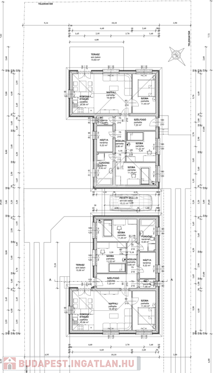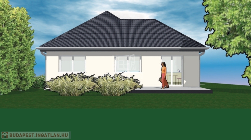 A hátsó ikerházfélhez 460 m²-es önálló telekrész tartozik.