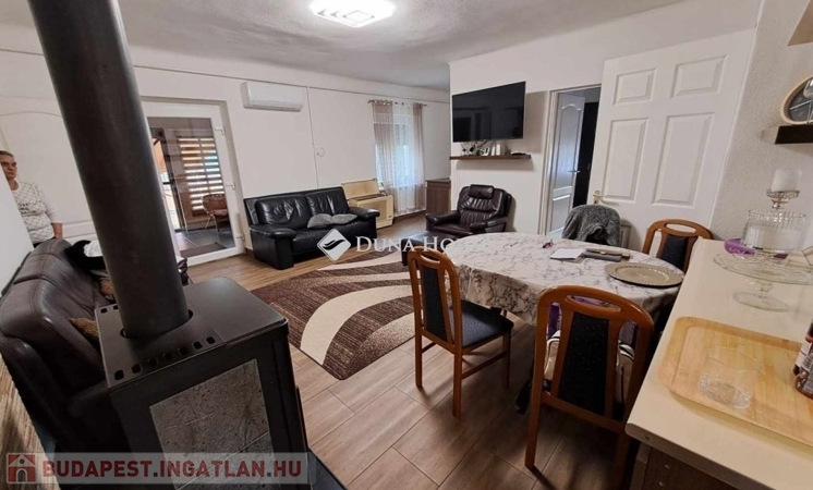 Tápiószelén eladó amerikai konyhás nappali + 2 szobás - téglából épült - felújított - házikó, mely beton alapra épült! A családi ház tetőtere beépíthető. A ház alatt egy 8 m2-es pince is kialakításra került, valamint 2 garázst találunk a kertben. A hátsó kertben egy 140 m2-es melléképület építése kezdődött meg, ahol a falak már állnak és kb. 1/3 részben már födém is került a falak fölé. (építési terv engedélyezve rá).Az épület elosztása kitűnő: Fedett teraszon keresztül lépünk be a tágas előszobába. Innen az amerikai konyhás nappaliba jutunk - itt a konyhabútor az ár részét képzi. Szemben egy fürdő/mosdó helyiség lett kialakítva, ahol zuhany és kád is kiépítésre került. Balra a nagyobb szoba található, mellette pedig egy kisebb kamra. A nappali jobb oldalán egy másik nagy szoba került kialakításra, mellettük pedig 2 db kamra. (ezek alatt pince helyezkedik el). Az épülethez hozzáépítve egy garázst is találunk, valamint még egy nagyobb - mobil garázs is kialkításra került.Összközműves és tehermentes az ingatlan! Az otthon melegét több fűtési lehetőség is adja: klíma, gázkonvektor és kandalló is beépítésre került.Az ingatlanban 10 éve a burkolatok cseréje és a belső falak festése megtörtént és a fürdőszoba felújítása is. Villanybojler is lecserélésre került és egy kandalló beéítése is ekkor történt. 5 éve a nyílászárók is kicserélésre történtek. A klíma 2 évvel ezelőtt került bekötésre. A villanyvezetékeket 2023-ban kicserélték teljsen az egész épületben.A villanyóra 20 amperesre lett bővítve.NÉzzük meg együtt!Közlekedés: Minden a közelben található 5-10 perces sétányira (óvoda, iskola, piac, ABC-k, orvosi rendelő, gyógyszertár, posta, zöldséges, húsbolt, pékség stb.)Vonattal Budapest Keleti PU - Szolnok között, valamint volánbusszal a környező településekre (Nagykáta és Cegléd között).