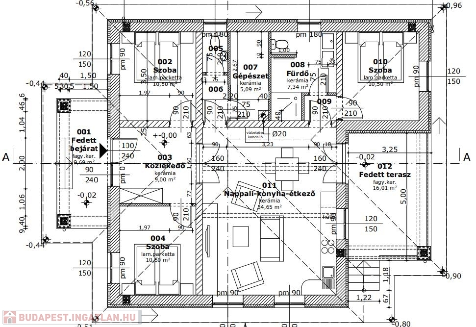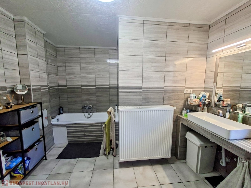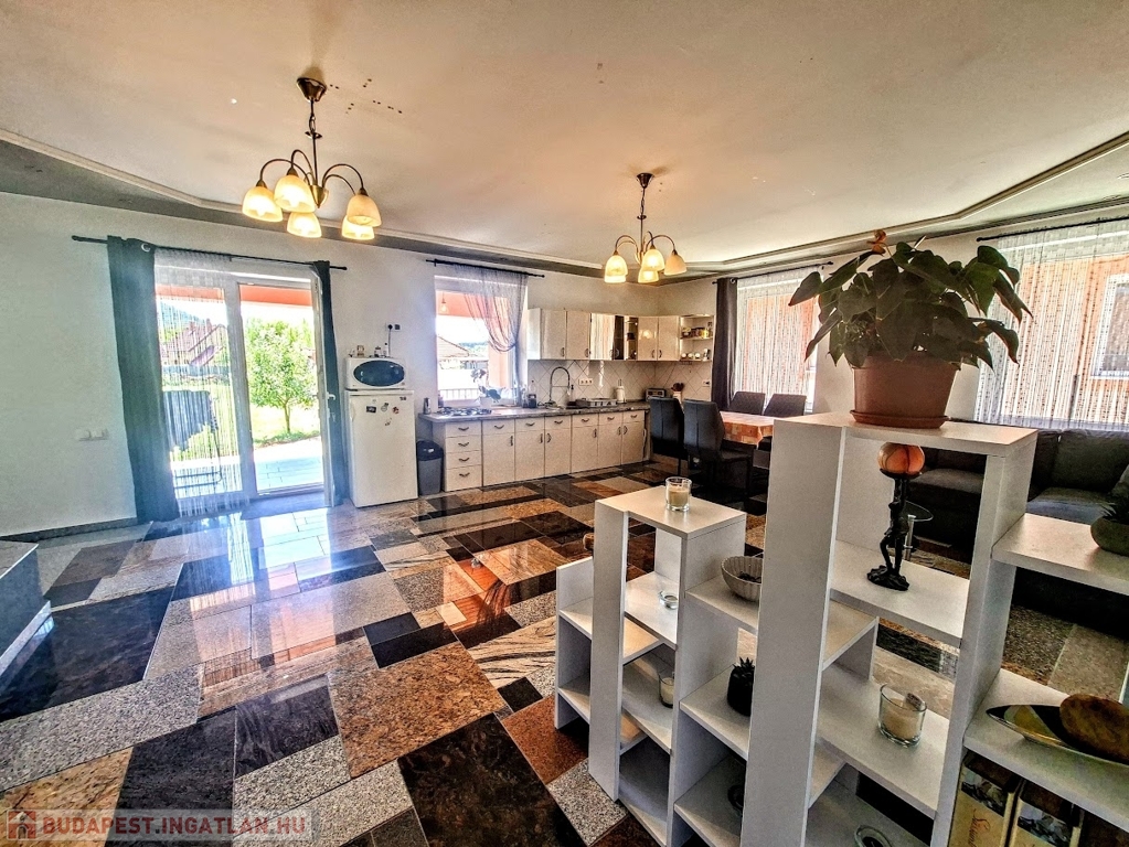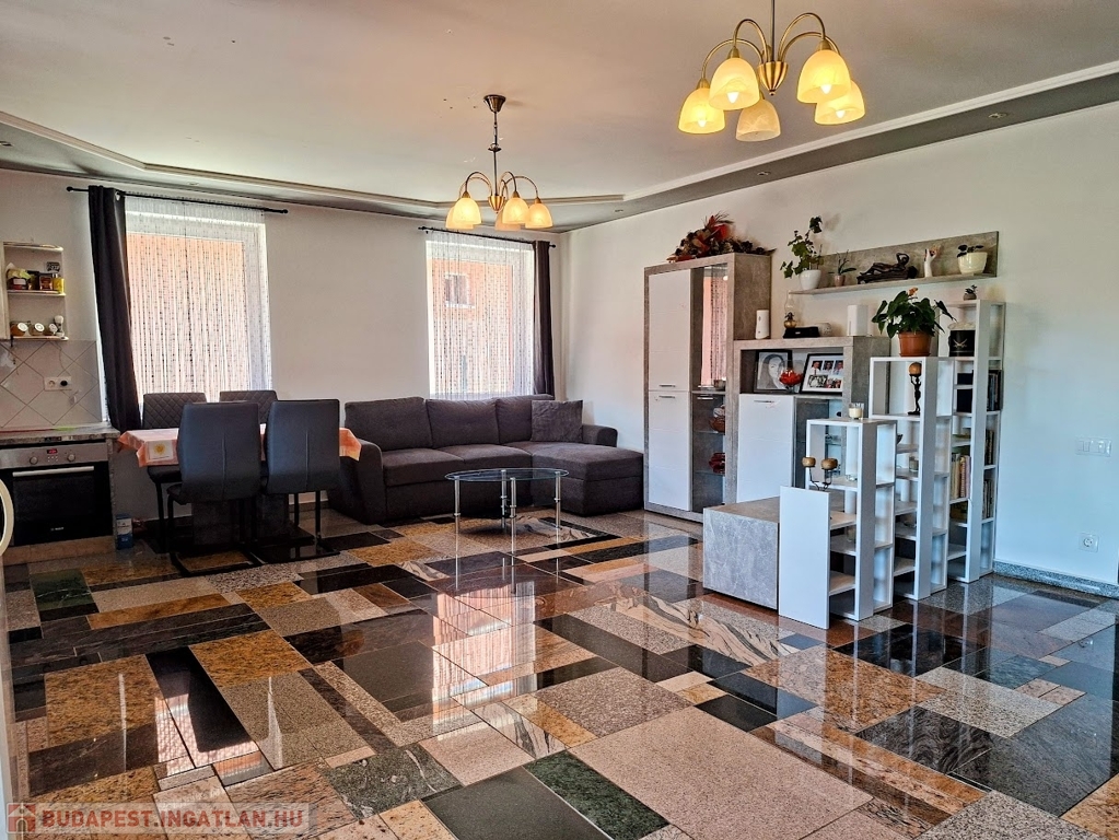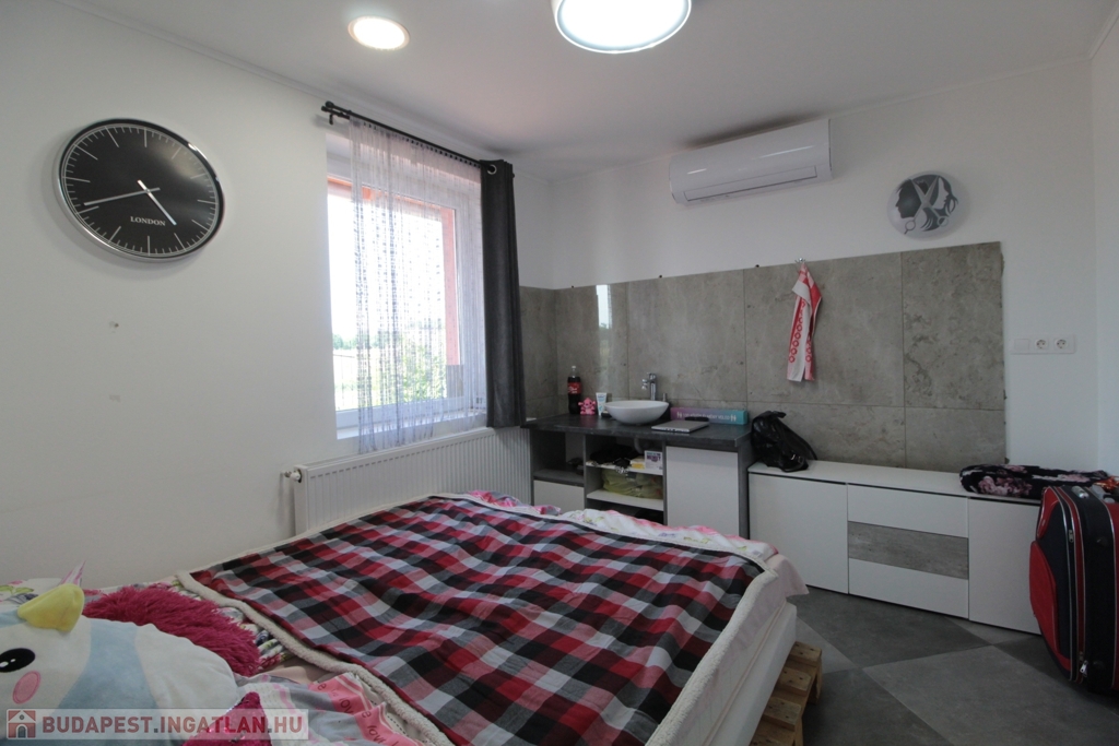 Az ingatlan tervezése során kiemelt figyelmet fordítottak a funkcionalitásra és az esztétikára. A világos, modern térben harmóniában jelenik meg a közösségi időtöltésre alkalmas nagy nappali és az elvonulásra alkalmas magánszféra.