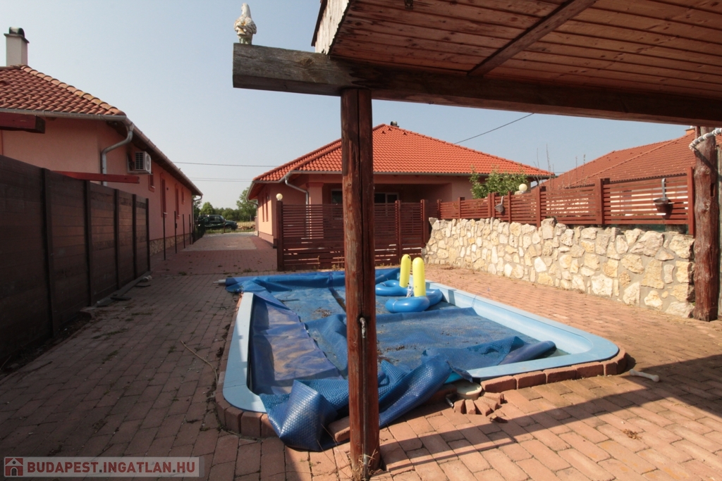 A kertben elhelyezkedő 3x5 méteres medence, az épített kemence és a pergola mind hozzájárulnak ahhoz, hogy az otthon tökéletes helyszíne legyen családi összejöveteleknek és baráti találkozóknak.