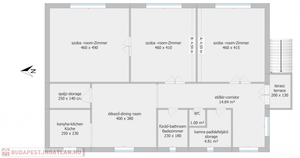 Mérete: 110 nm nettó hasznos alapterület a lakószinten.