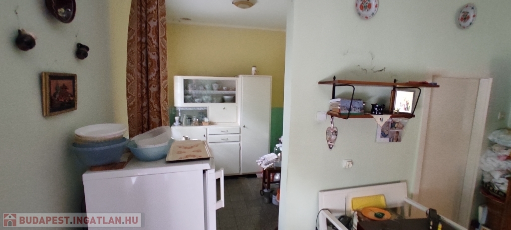 -Helyiségei: lakószinten nagy méretű szobák és étkező, részben külön bejárattal, külön fürdő és WC, külön konyha és étkező, jelenleg 2 kamra, előszoba.