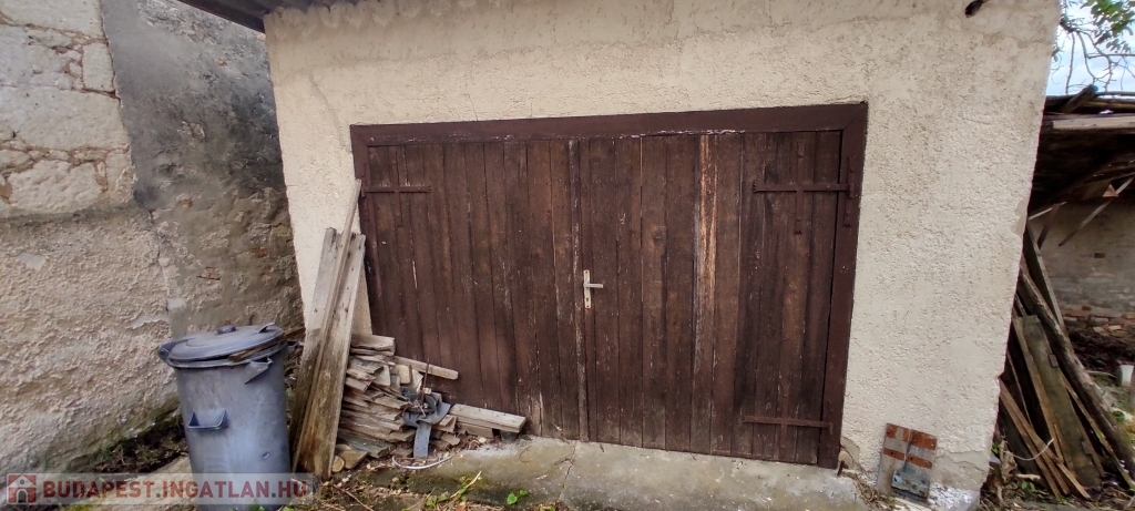 A kertben garázs, a ház mellett.