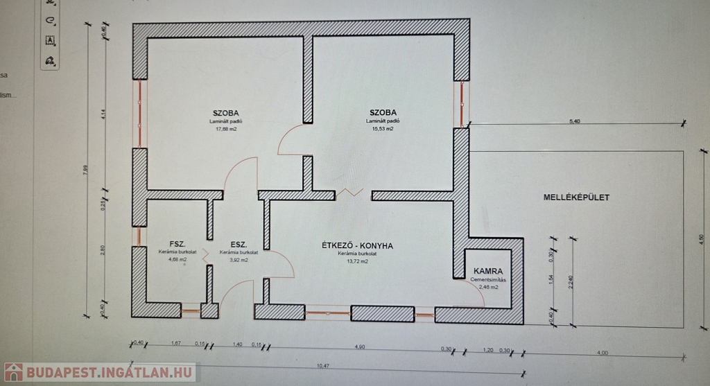 Falazat: kő, amely 5 cm szigetelést kapott, jó állapotban