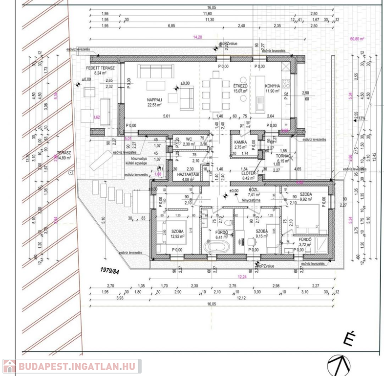 Elsődleges szempont volt, a ház praktikus élettereinek kialakítása: A mai modern igényeket jól kiszolgáló lakóterében, egy szinten, kényelmesen élhető, háromszobás, amerikai konyhás nappalis, dupla fürdőszobás, családi ház alakult ki. (melyet alaposabban áttanulmányozhat a tervrajzok és a látványtervek segítségével)