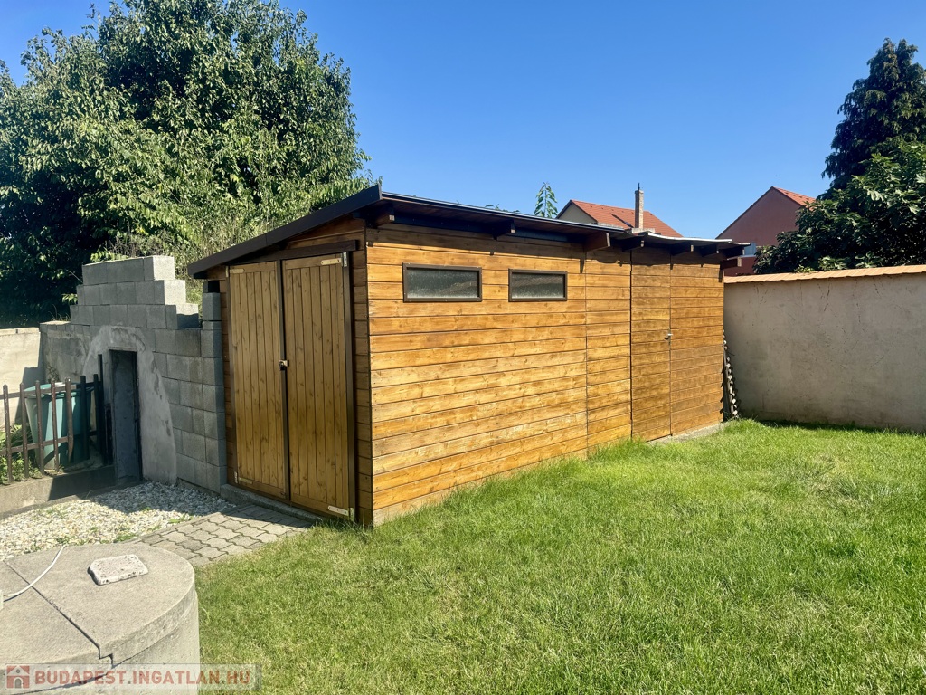 A telek élhető méretű, 700 nm-es. Teljesen körbekerített, parkosított. Az udvar a kíváncsi szemek elől teljesen rejtve van, megőrizve a család privát szféráját. Hangulatos kerti tóval, pincével, kerti tárolóval.