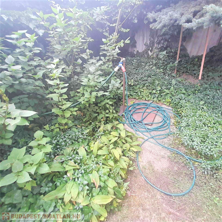 Kertben 2( nagyméretű) beállásos garázs, 1 cseresznyefa, 1 szilvafa, 2 diófa, szőlő, gesztenye, barackfa, fúrt kút, kerti csap-öntözővel kapott helyet. (teljesen körbekerített)