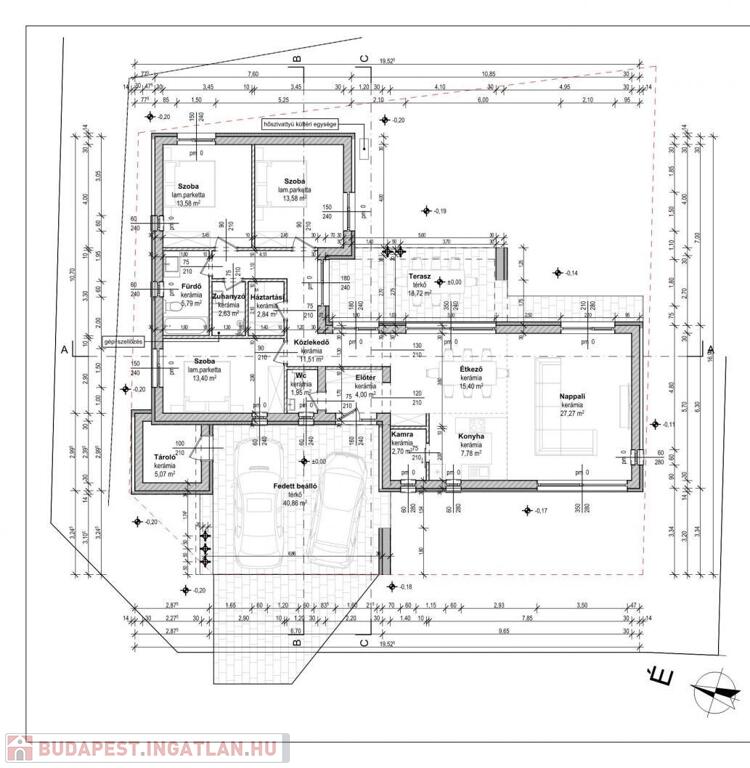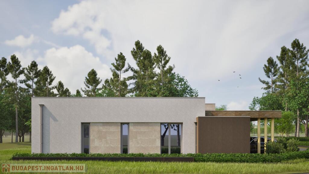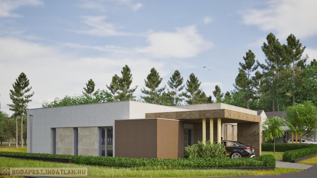 A mai modern igényeket jól kiszolgáló, lakóterében egyszintes, kényelmesen élhető, három szoba + amerikai konyhás nappalis (3 méter 30 cm belmagassággal) ,két fürdőszobás, fedett kocsibeállóval megépített ÖNÁLLÓ CSALÁDI HÁZ fogalmazódott meg a tervezés során. Melyet alaposabban áttanulmányozhat a tervrajzok és a látványtervek segítségével.