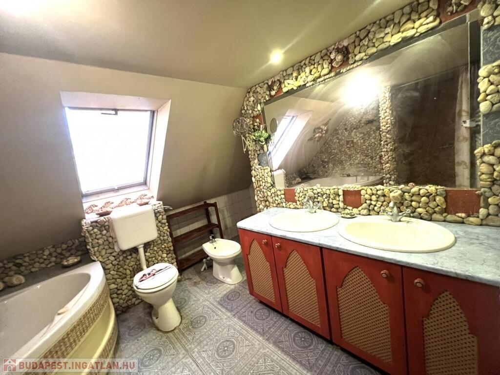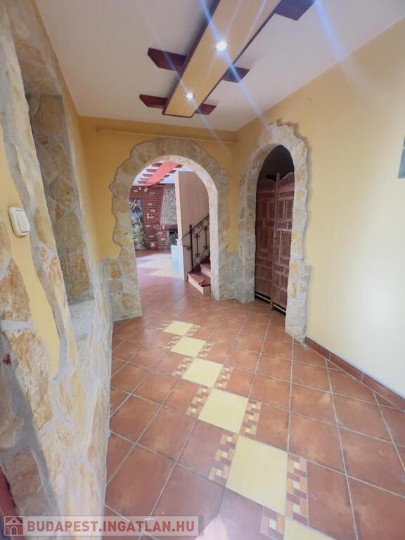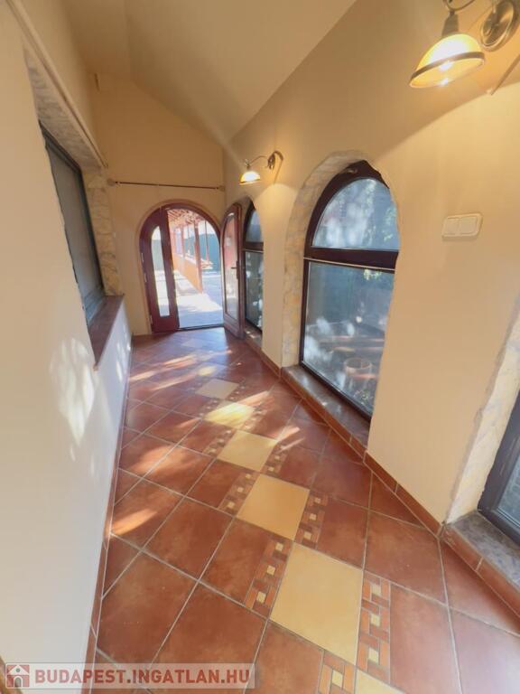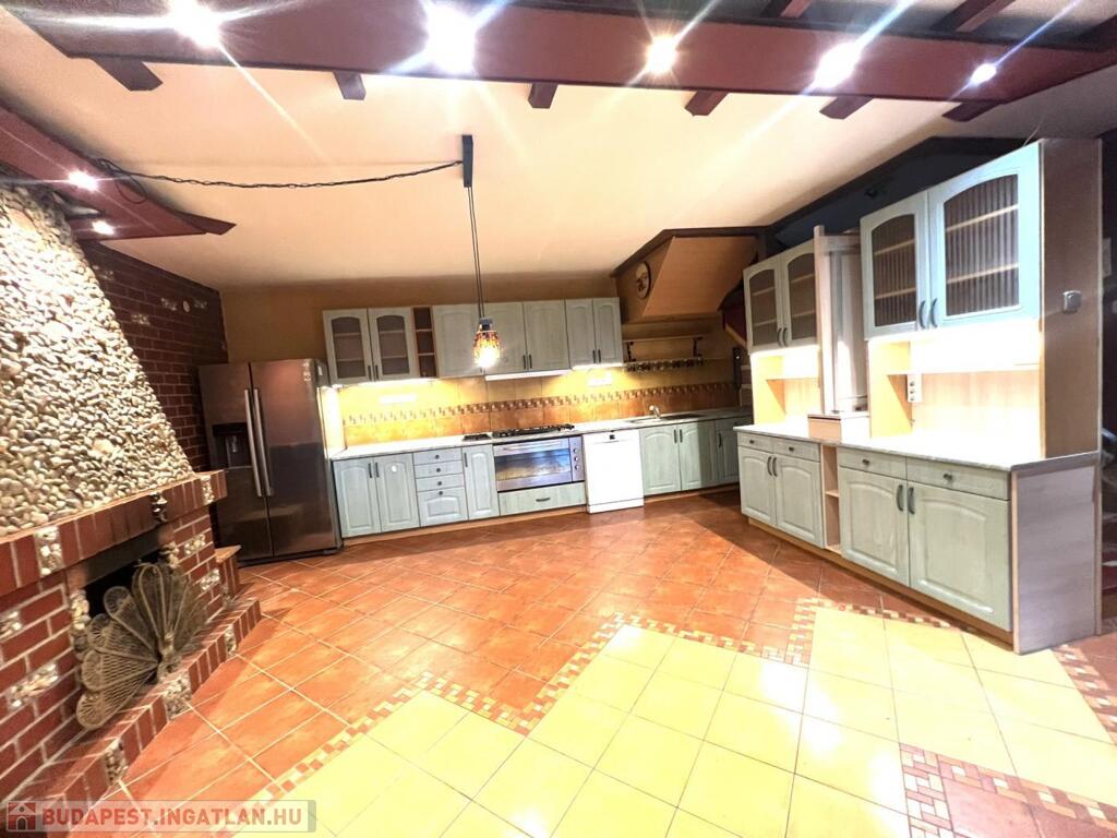 A konyha mindennel felszerelt, praktikus elrendezésű. A nappali kialakítása ízléses, meghit hangulatot biztosít a család közösen eltöltött estéihez,vagy éppen napközben a hatalmas üvegablakaiból csodálhatjuk a szépen karbantartott ,egzotikus ,kerti tavacskákkal, csobogókkal , erdőkert stílusban kialakított udvart, mely egy igazi kis édenkert, ahol az utolsó kis fűszálnak is meg van a helye.