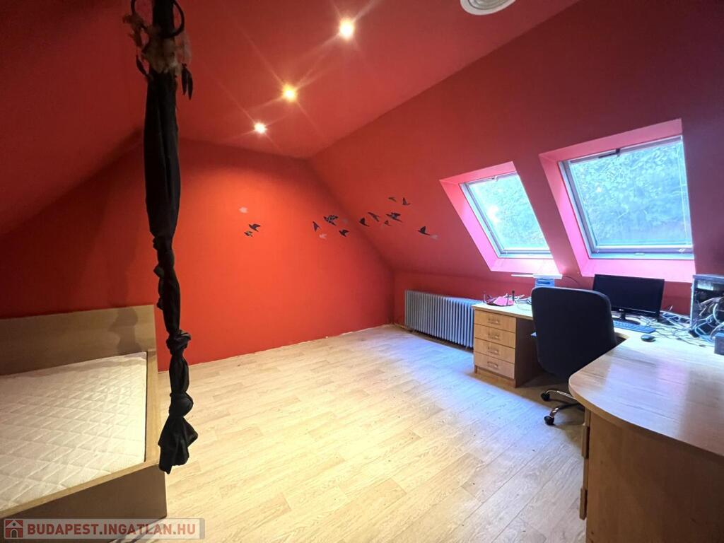 A földszinten található 46m2-es amerikai-konyhás nappali bőséges helyet kínál, ahol együtt lehet a család, ugyanakkor a tetőtérben kialakított szobákban (4 szoba+ fürdőszoba) mindenki számára megmarad az intim szféra. Így gyermeke mindegyike külön-külön kis birodalmat birtokolhat.