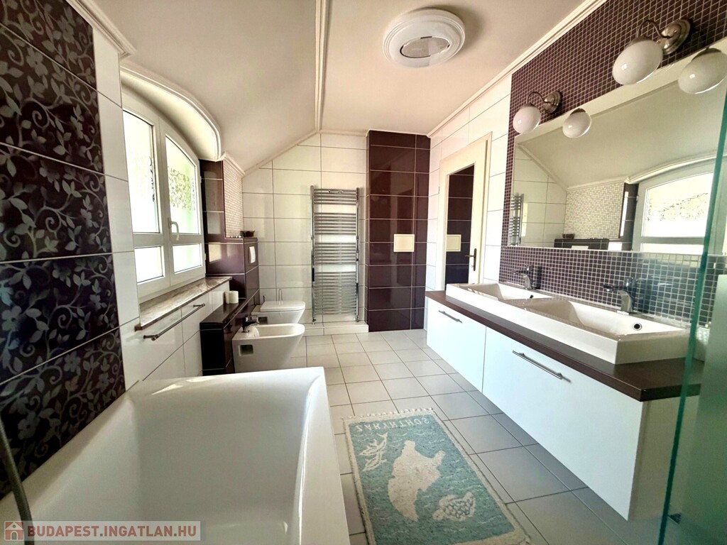 Az emeleten 3 hálószoba, egy tágas fürdő és egy külön gardróbhelyiség található.