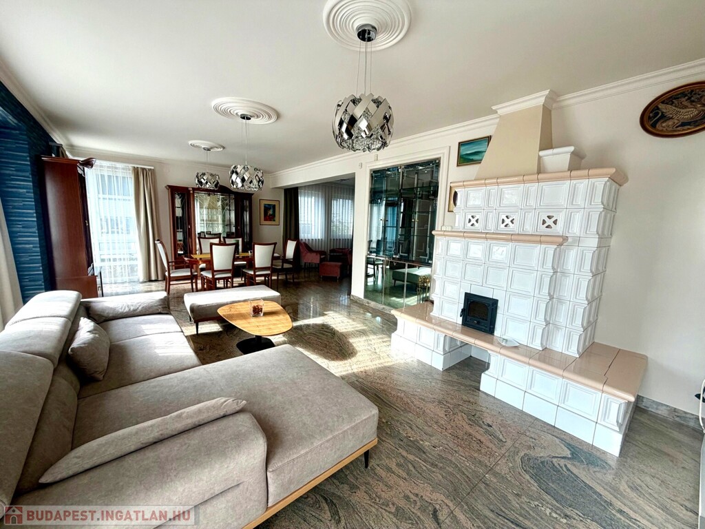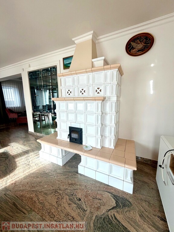 A ház anyaghasználata kifejezetten prémium és időtálló: gránit burkolatok, tölgy parketta, egyedi fehér cserépkályha – olyan elemek, amelyek nemcsak esztétikai értéket képviselnek, hanem hosszú távon is értéktartók.