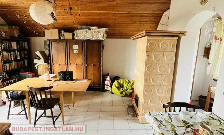 A ház 60 m2, két szinten. A felső szint 30 m2, otthonos lakótérnek van kialakítva barátságos cserépkályha társaságában.