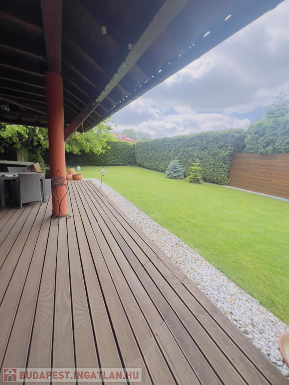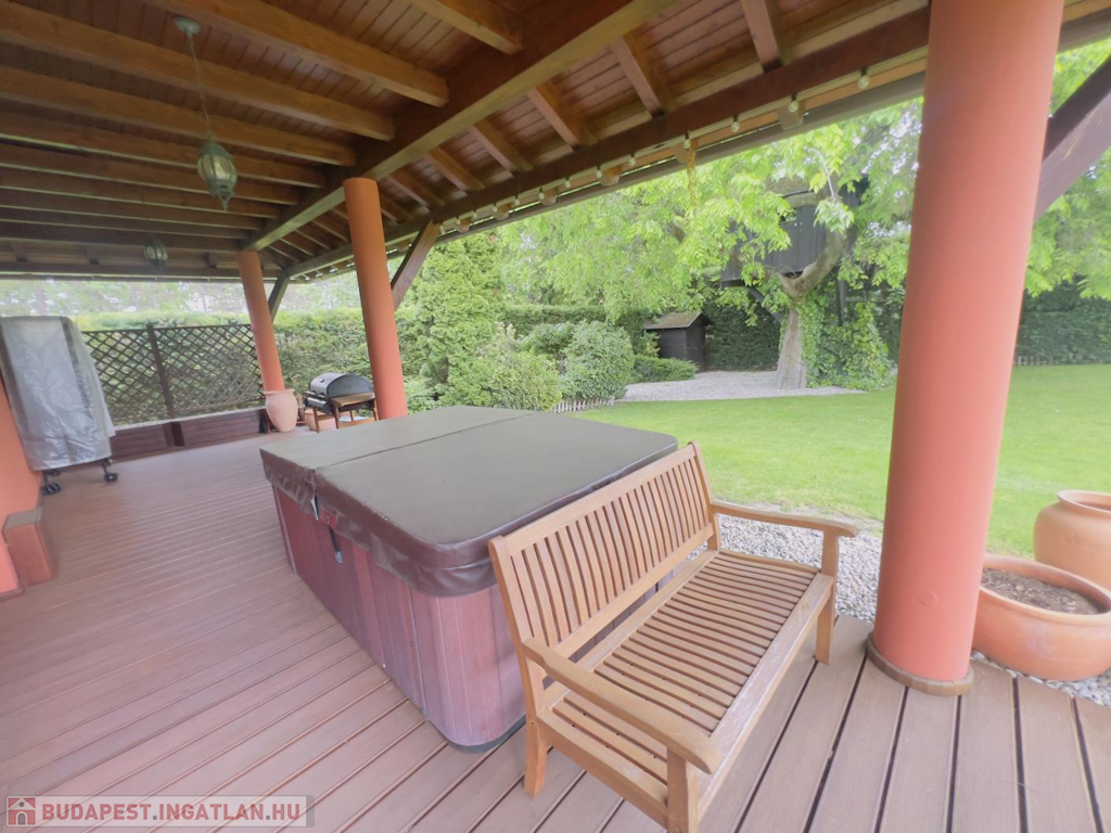 A házat gondosan ápolt, parkosított kert öleli körbe, melynek végében egy igazi gyerekkuckó várja a legkisebbeket: egy fára épített, hangulatos házikó, ami minden kisgyermek álma.