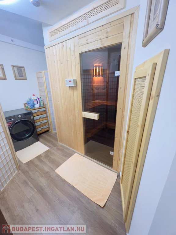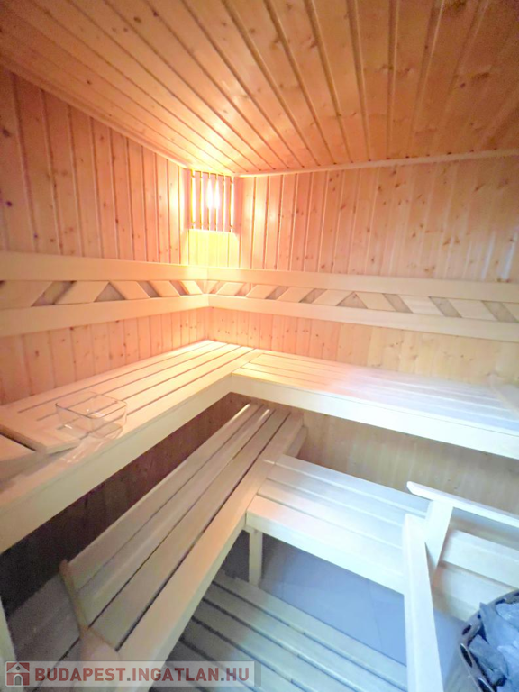 A szuterén külön kis birodalom: itt kapott helyet egy vendégszoba, egy vadonatúj fürdőszoba, egy kényelmes szauna, valamint a gépészet.