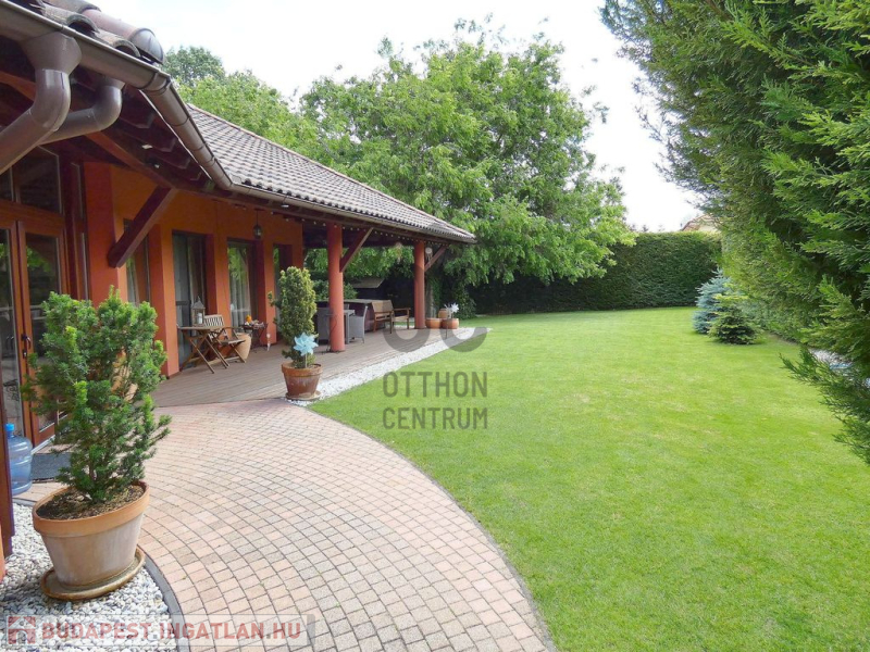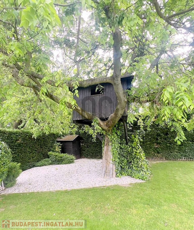 A ház körül a fű minden évszakban üde és zöld, köszönhetően az automata öntözőrendszernek és a tartályrendszerrel biztosított fúrt kútnak. A hátsó kertben egy lombház várja a gyerekeket – egy álomszerű, fára épített kuckó, amit nehéz nem észrevenni.