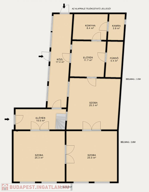Az épület belső tereit a különböző BELMAGASSÁGOK teszik változatossá: az EREDETI RÉSZ 3,5 MÉTERES, míg a FELÚJÍTOTT ÉPÜLETRÉSZ 2,6 MÉTERES belmagassággal rendelkezik. Ez a térarány a ház egészében tágas, elegáns és világos légkört teremt, amely visszaidézi a klasszikus nagypolgári otthonok időtálló hangulatát.