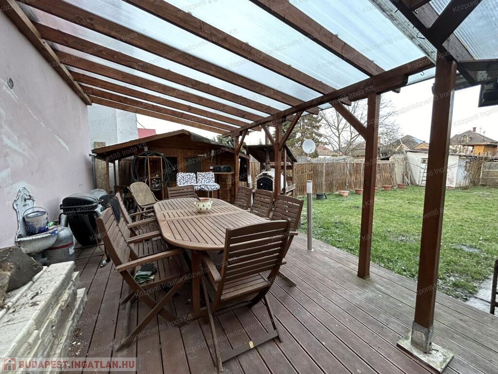 A házhoz kapcsolódik egy 40 m2-es, fedett terasz is, amely megnöveli az életteret. A házban található egyedi bútorok (gardrób, beépített szekrények, konyhabútor gépek nélkül) a vételár részét képezik.