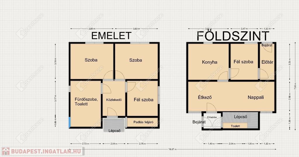 -Kétszintes kialakítás, ami lehetővé teszi két lakrész kialakítását is