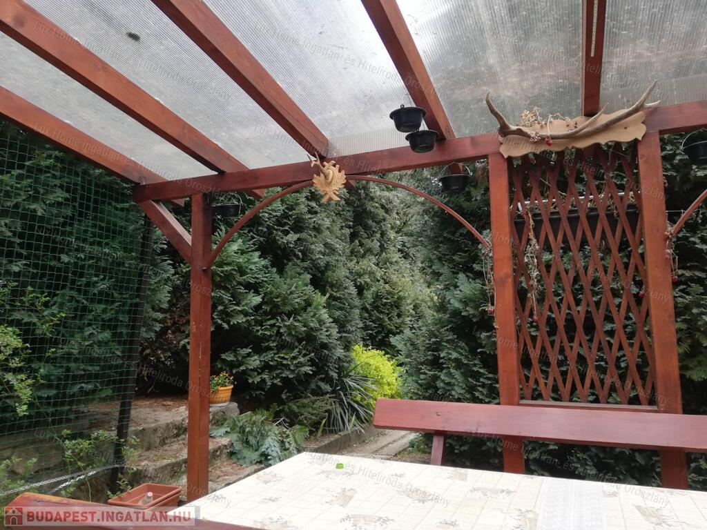 1000 m2-es telek, rendezett jó kerítéssel. 150 m2-es alapterületű ház, 4 emelettel, kerti kiülővel, sütögetővel, hatalmas terasszal amiről remek panoráma tárul elénk. A kertben hatalmas örökzöldek találhatóak ami még természetközelibbé teszi a kertet.