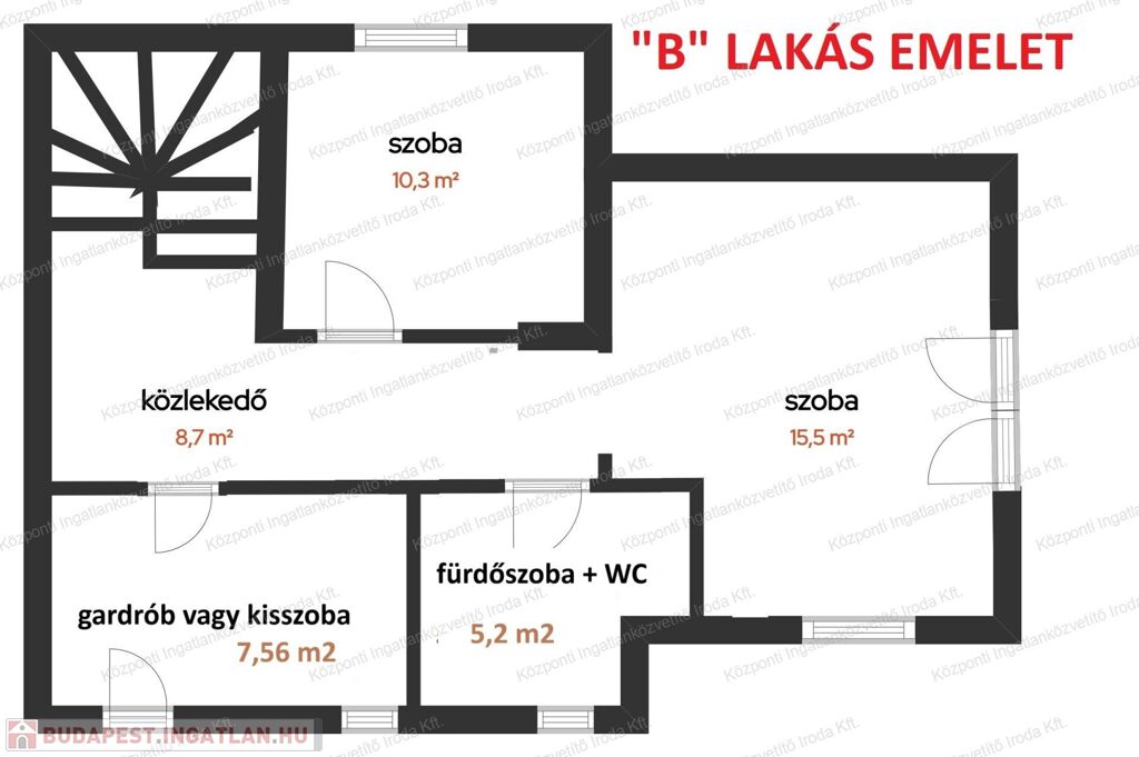 Az ikerház „B” lakása is eladó, ami 2 szintes, br. 110 m2-es.