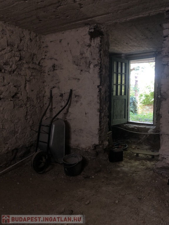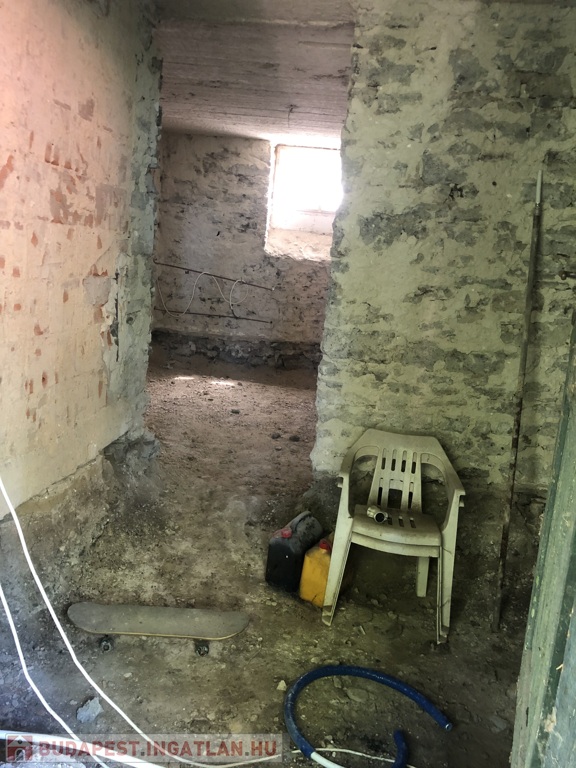 - Az alsó szinten – amely az utcafront felől szuterén, a kert felől viszont földszinti – már megkezdődtek az átalakítások, az alapokig visszabontva, így itt teljesen új funkciókat, elrendezést alakíthat ki a leendő tulajdonos.