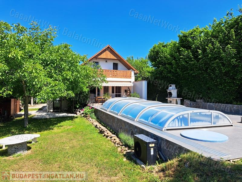 - egy 8 x 3 m kb. 1,5 m mély fűthető , fedhető medence is található a hangulatos természetközeli kertben ( a medence folyamatosan gondozott és tökéletesen működik )