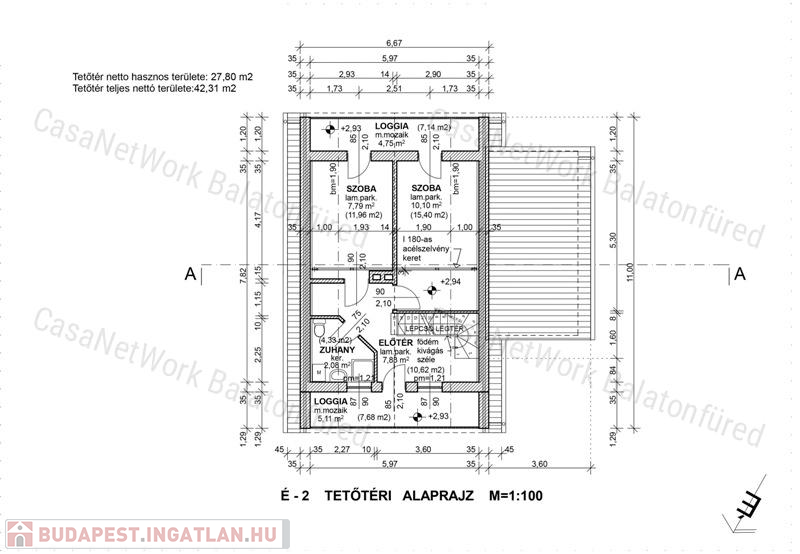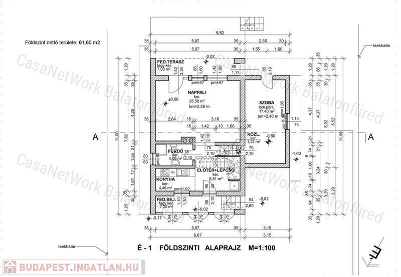 - szépen parkosított telek 1037 m2, a 2+fél szintes, terasszal és több erkéllyel rendelkező épület 104 m2 hasznos alapterületű