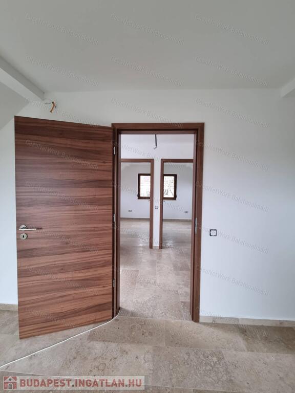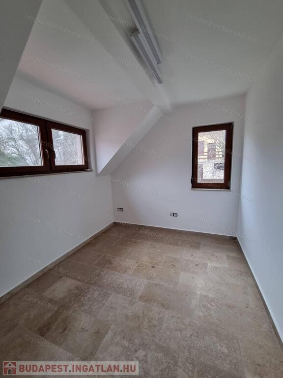 - emelet: háztartási helyiség, egy toalett, három szoba rálátással a környező tájra és a Balatonra