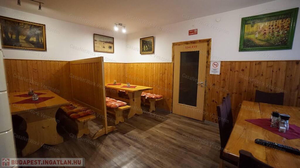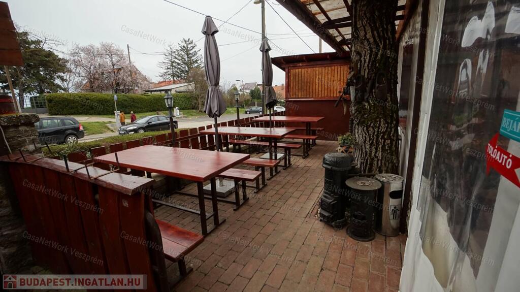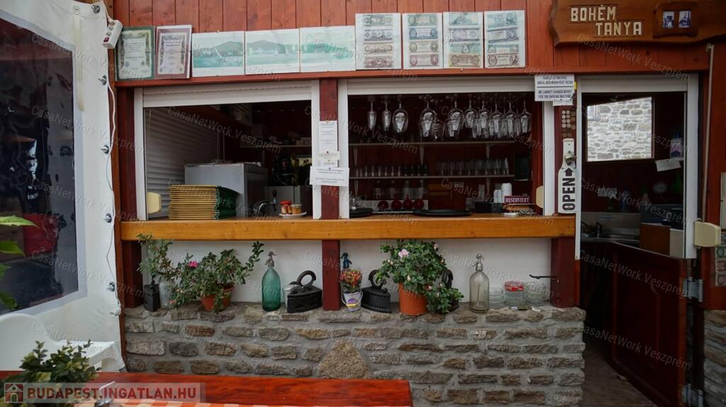 - a vendéglő: konyha előkészítőkkel, belső terem, mosdók, zárható nagy terasz, pult és egy látványgrill; raktár, pince és személyzeti helyiségek