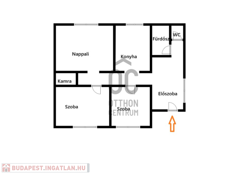 - alapterülete 86 nm, mely nappali, 2 tágas hálószoba, konyha, kamra, fürdőszoba, előszoba, külön WC, elosztású