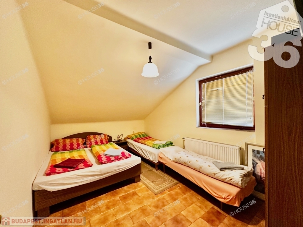 Földszinten fedett terasz és két lakrész, míg az emeleten egy lakórész található. Udvarban 2-3 autó számára parkolási lehetőség.