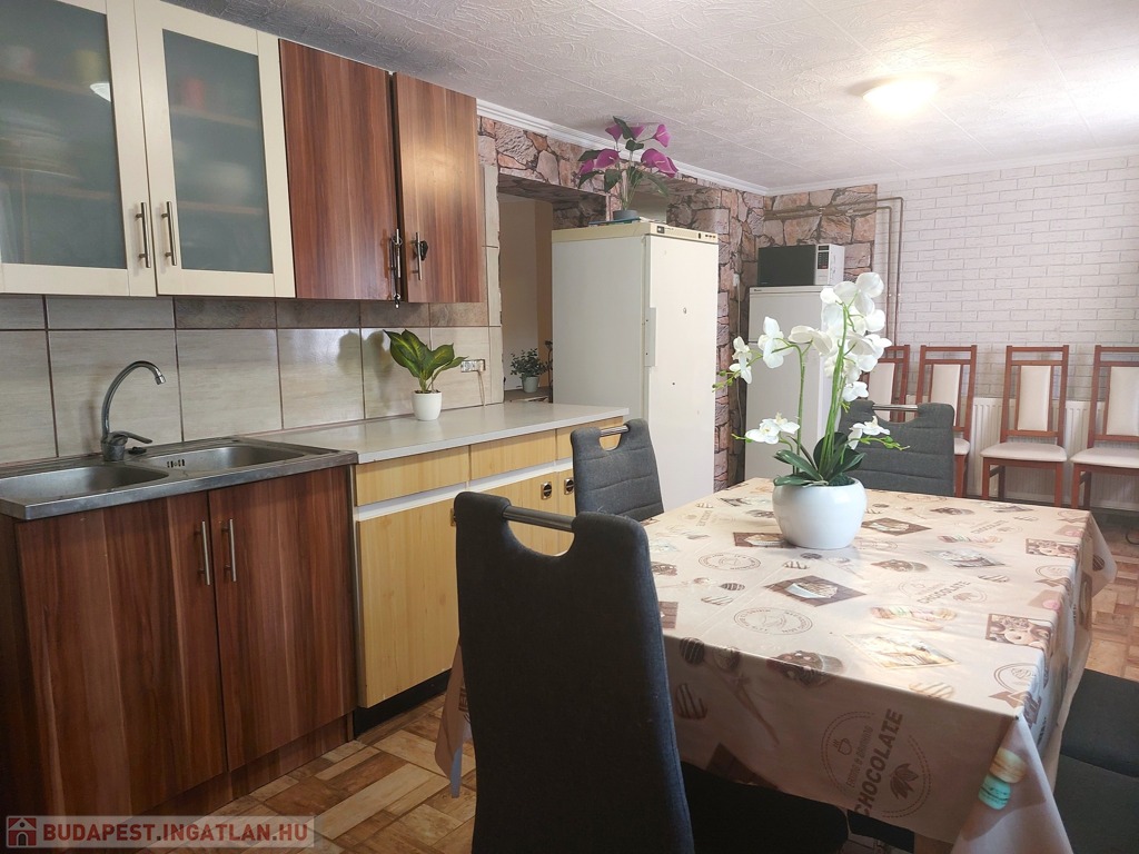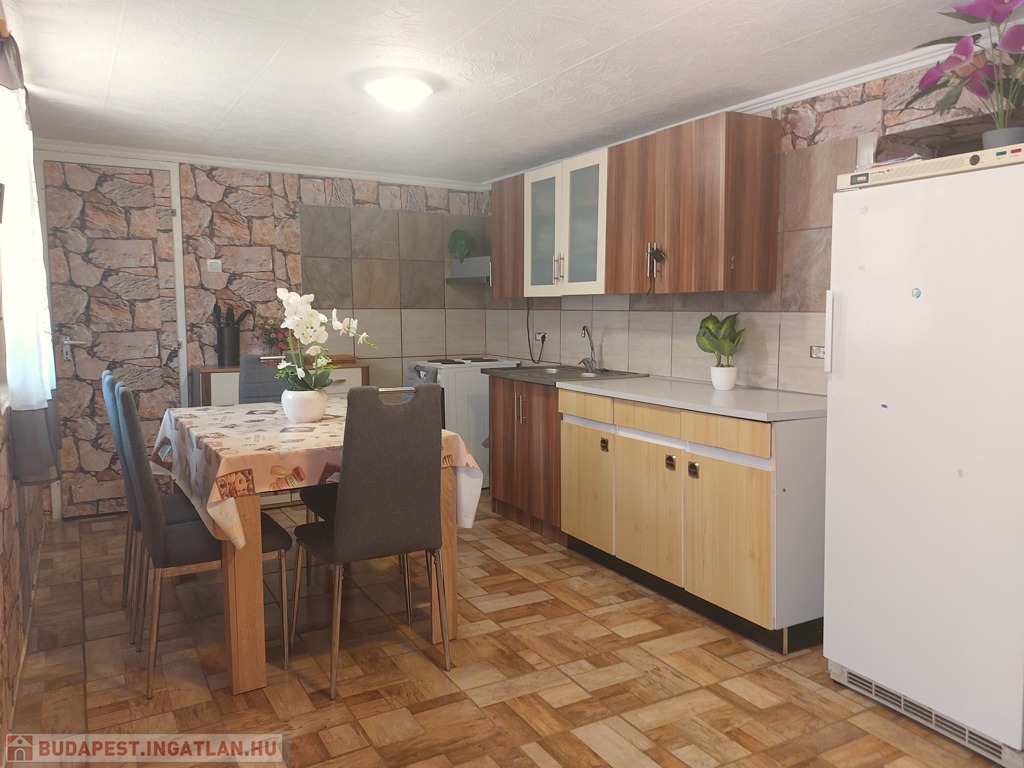 - a 78,8 nm-es hasznos alapterületű lakóház helyiségei: nagy (17 nm-es) konyha- étkező, kamra, közlekedő, 14,88 nm-es nappali, 2 egész szoba, egy 8 nm-es szoba, fürdő- WC
