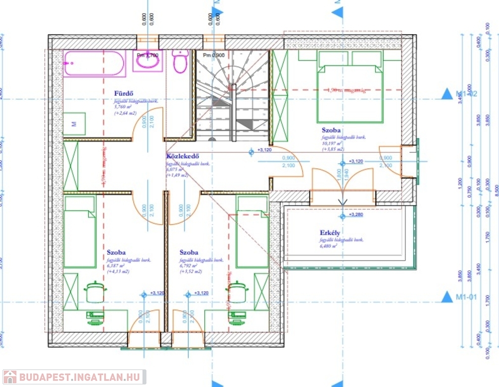 Amerikai konyhás nappali + étkező, 4 hálószoba, fürdőszoba, külön WC, kamra, erkély