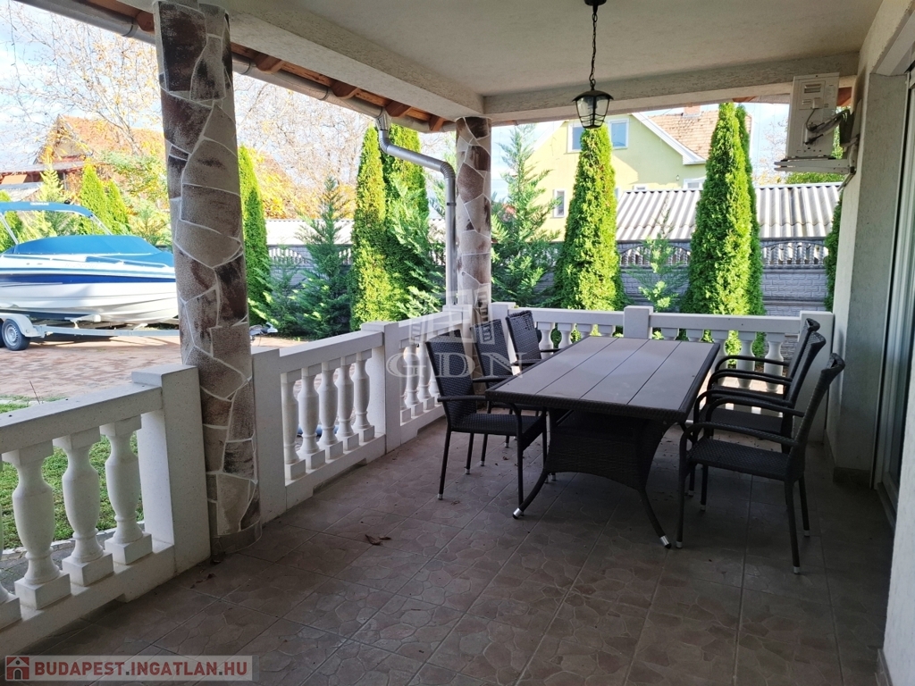 Az ingatlan egyedi stílusa rögtön szembeötlő: a műkő korlátokkal díszített, teraszok elegáns hangulatot árasztanak, és a konyhából közvetlenül megközelíthető intim fedett terasz tökéletes helyszín egy nyugodt reggeli kávéhoz, vagy egy hosszú, beszélgetős estéhez.