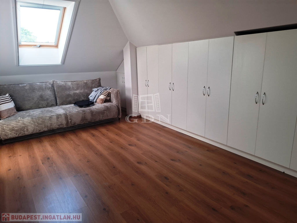 Felső szint: tágas nappali dolgozó sarokkal, 3 hálószoba, fürdőszoba zuhannyal.