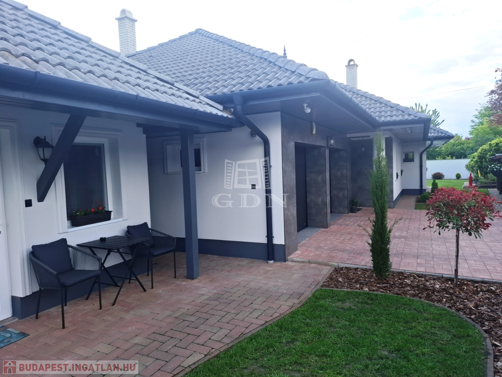 Ez a páratlan otthon Tököl közkedvelt Papkert városrészében, egy csendes, aszfaltozott, átmenő forgalomtól mentes utcában helyezkedik el.