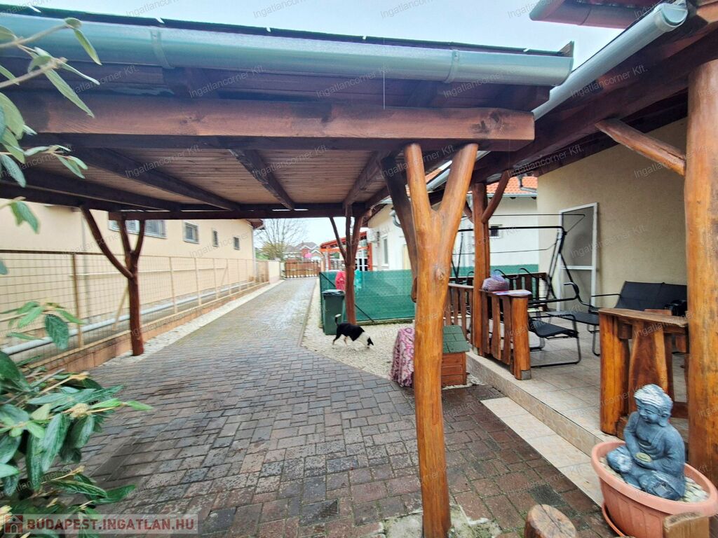 -PARKOLÁS: 1 autónak FEDETT BEÁLLÓ is kialakításra került, de hátsó ház lévén a szorgalmi út végig térkővel burkolt, így 5 autó parkolása is megoldott telken belül.