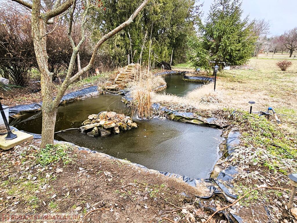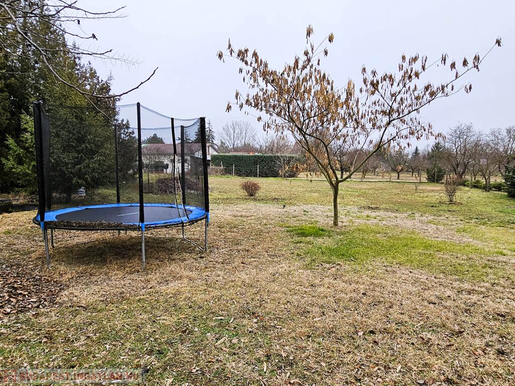 A füvesített udvarban 12 m2-es nyárikonyha, fedett autóbeálló, kerti tó és fúrt kút található.