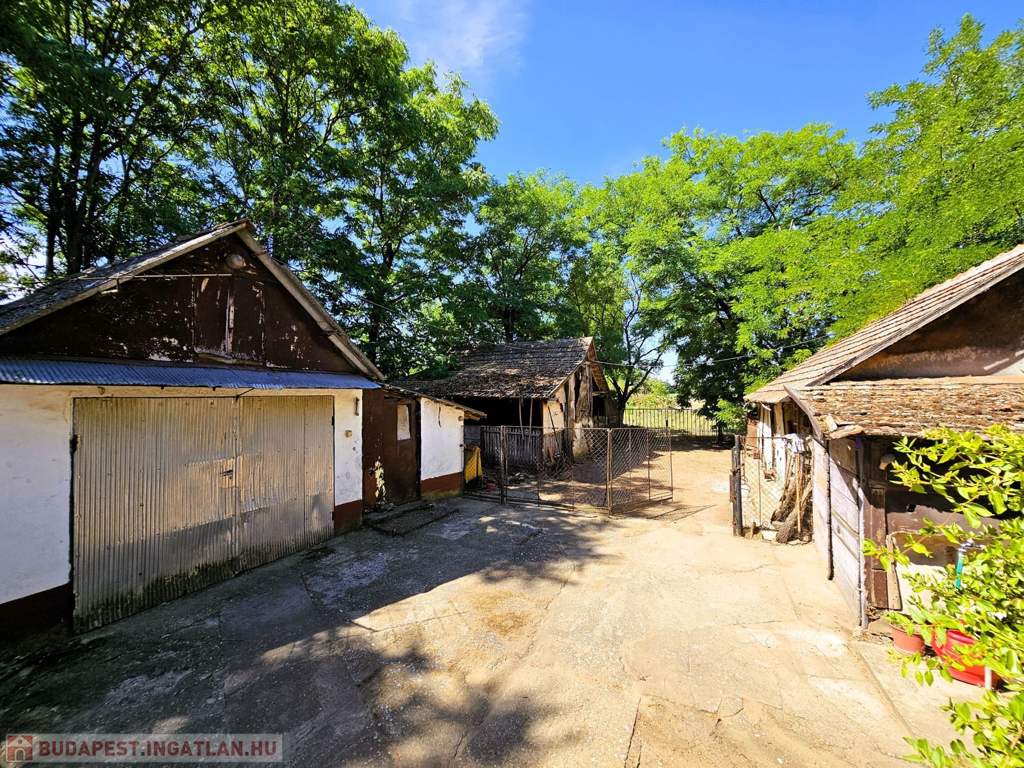 A tágas udvarban kerti csap és fúrt kút segíti az öntözést, emellett több tárolóhelyiség és nagyméretű, beton aljzatú ólak is rendelkezésre állnak, így akár önálló gazdálkodásra is alkalmas.