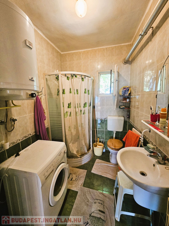 A ház fűtéséről gázkonvektorok és kandalló gondoskodnak, a meleg vizet gázbojler biztosítja. A praktikus elrendezésű lakótérben két szoba, két előtér, fürdőszoba, konyha-étkező, közlekedő, spájz és egy tároló található. Az ingatlanhoz tartozik egy 16 m2-es garázs is.