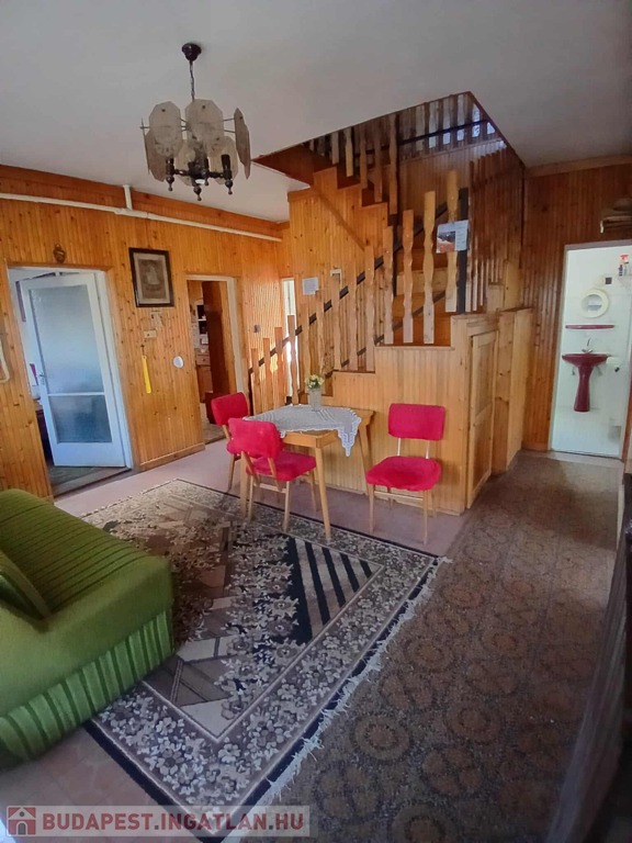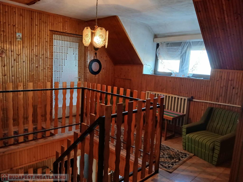 Burkolatok: A szobákban kiváló állapotú, megkímélt parketta található (nem recseg, nincs szét nyílva), a többi helyiségben csempe. A nappali, az emeleti nappali és a konyha oldalait lambéria borítja, ami otthonos hangulatot ad.