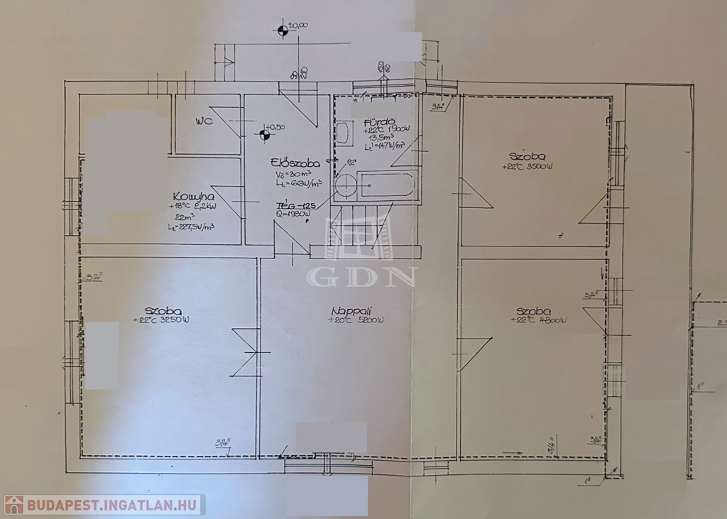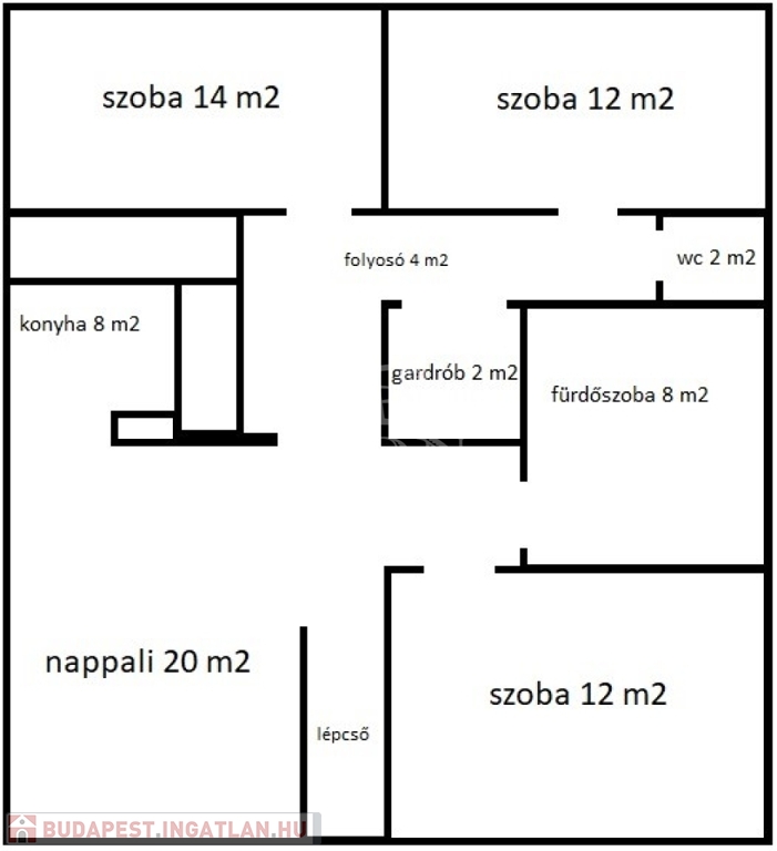Helyiségek: fürdő/WC, WC, amerikai konyha-nappali-étkező, 1 + 2 fél szoba, gardrób