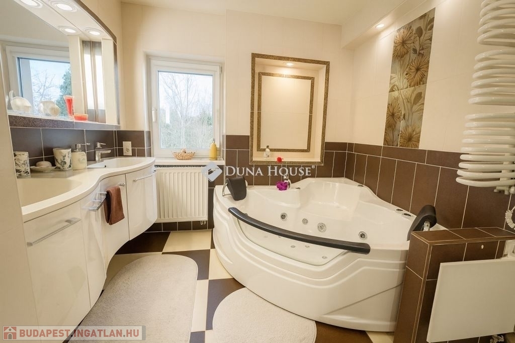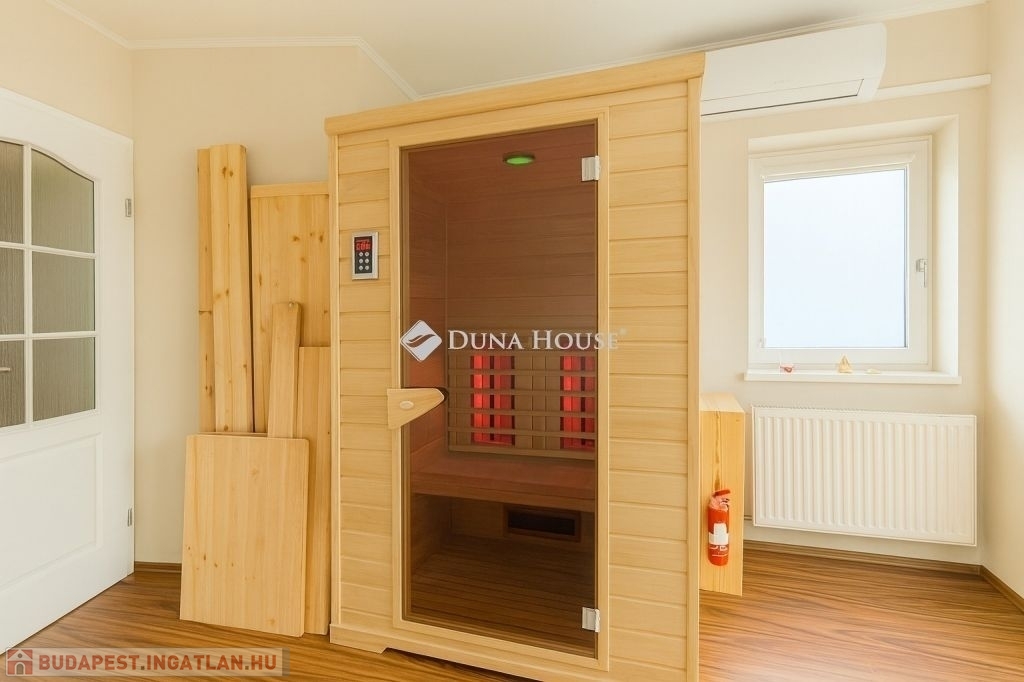 - Emelet: 3 hálószoba, luxus fürdő Wellis jacuzzis káddal, infraszauna- Kültér: három terasz, köztük egy fedett, motoros napellenzővel