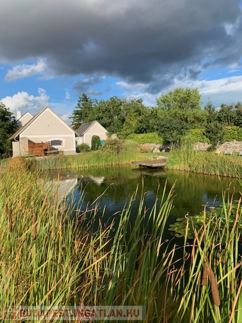 A gyönyörűen kialakított és teljes intimitást nyújtó, 16 m utcafronti szélességű kertben található egy kerti tó stéggel és vízforgatóval, de a kültéri fürdődézsa, szauna, kültéri zuhany is a teljes kikapcsolódást szolgálja.