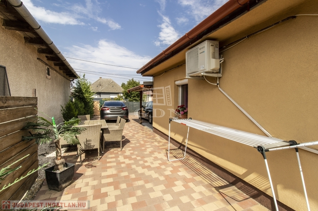 Az épületet kondenzációs gázcirkó, 3 db klíma, 2 + 1 félszoba (alaprajzon tároló), amerikai konyha - nappali, füdőszoba, mosókonyha, valamint egy önálló 30 nm-es tároló jellemzi.